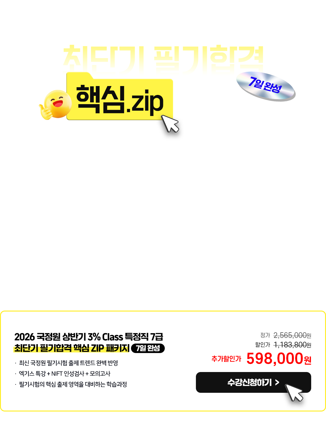 - 2026 상반기 국정원 3% Class 특정직 7급 ALL-In-One 핵심 ZIP 패키지 7일 완성 온라인