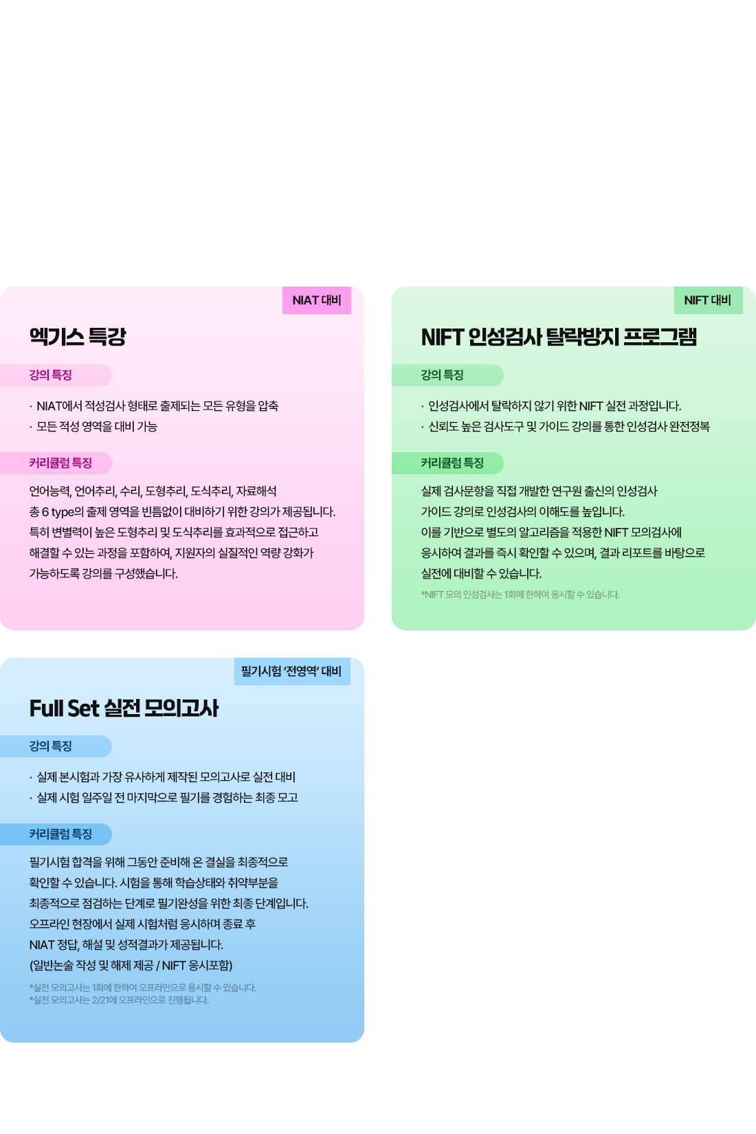 - 실전 모의고사(1회)에 한하여 오프라인으로 진행되며, 학원 상황에 따라 세부일정은 일부 변경될 수 있습니다.